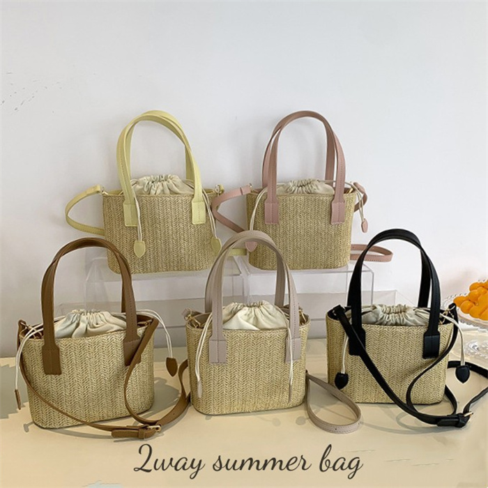 ミニスクエアバッグ 2 草編み巾着袋バッグ トートバッグ 斜めがけ 浴衣小物 麦わらかばん 花火大会 手提げバッグ 夏祭り 籠バッグ 大人可愛いお出かけ 浴衣バッグリゾート