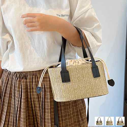 ミニスクエアバッグ 2WAY 草編み巾着袋バッグ トートバッグ 斜めがけ 浴衣小物 麦わらかばん 花火大会 手提げバッグ 夏祭り 籠バッグ 大人可愛いお出かけ 浴衣バッグリゾート