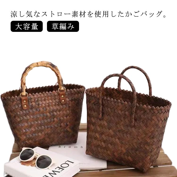 かごバッグ ハンドバッグ カゴバッグ マルシェバッグ バスケット 大容量 レディース 夏 トートバッグ ショルダーバッグ 春 レジャーバッグ 草編みバッグ カジュアル 軽量 かばん 手提げ お買い物バ