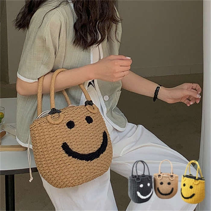 ファッション小物 気分転換~ スマイル かごバッグ Summer bag プレゼント 贈り物 ギフト 母の日 アイボリー イエロー ベージュ 白 黄 春夏 ♪