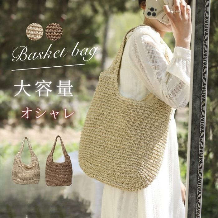 かごバッグ トート ショルダー レディース ファスナー 夏 バッグ 夏バッグ 肩掛け サマーバッグ トートバッグ カゴバッグ ハンドバッグ おしゃれ 浴衣 持ち手付き ナチュラル 大人 大きめ 女性