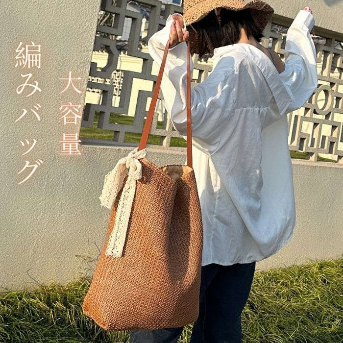 エコバッグ 大きめ カバン 旅行バッグ 肩掛け 手持ち 大容量 軽い 春夏 カジュアル お洒落 トレンド 通勤 通学 夏休み 海 リゾート デート ママコーデ 使い回し♪