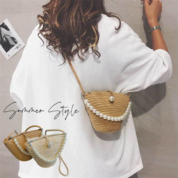 全3色 2way パール付きかごバッグ ベージュ ホワイト カラフル 10代 20代 30代 40代 50代 海 ピーチ プール リゾート 温泉 夏休み 花火 水着 浴衣 デート ママコーデ お呼ばれ