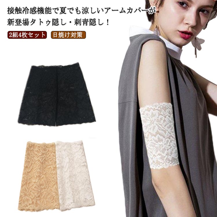 黒 傷跡かくし タトゥー隠し 傷跡隠す 二の腕サポーター レース ラッシュガード 2組4枚セット 肌色 刺青隠し アームガード ショート 接触冷感 日焼け対策 隠すサポーター 通気性 ストレッチ ブラ