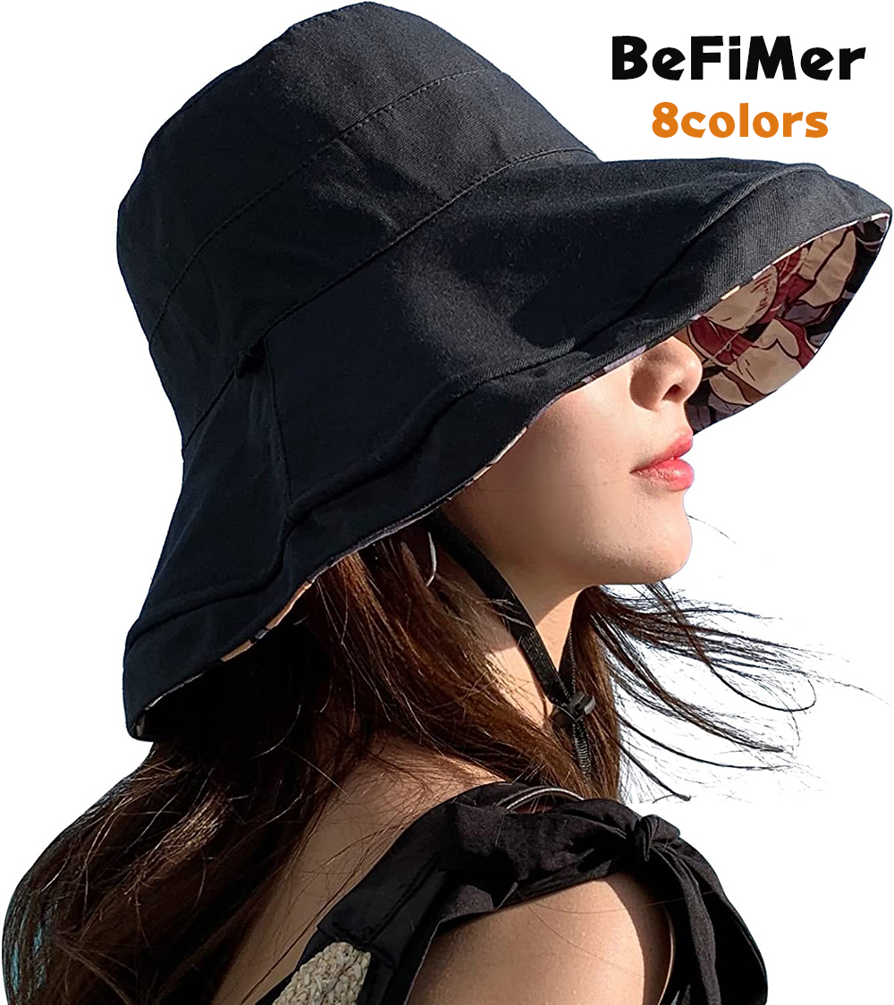 あご紐付き、飛ばない レディースハット つば広 綿 春 夏 カット 折りたたみ ウォーキング あご紐付き アウトドア ハット フリーサイズ 旅