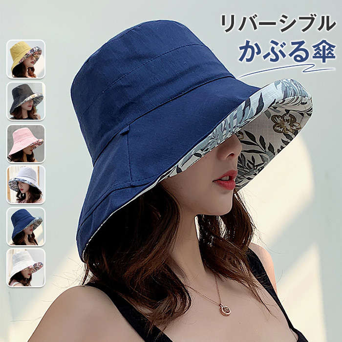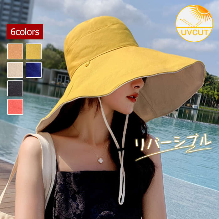 全6色 両面使える ハット イエロー ブラック グレー アイボリー ネイビー 小顔 オシャレ カジュアル 春夏 紫外線対策 暑さ対策 大きいサイズ プレゼント 贈り物 母の日 ♪