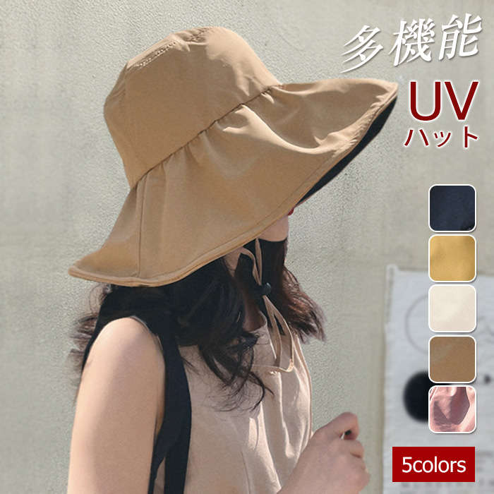全5色 完全遮光 折りたためる UVハット ブラック イエロー アイボリー キャメル ピンク 小顔効果 オシャレ 春夏 夏用 紫外線対策 暑さ対策 UV 大きいサイズ お洒落 トレンド ♪