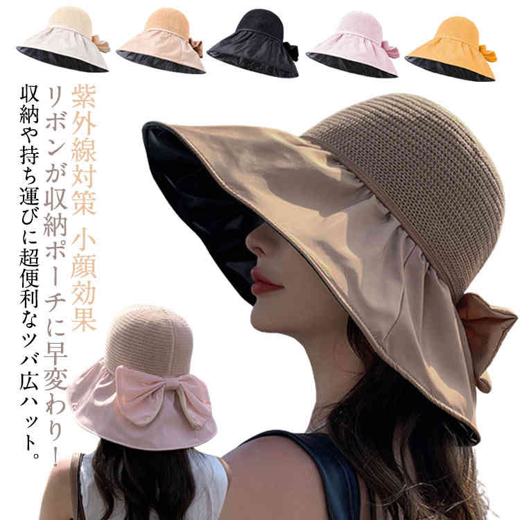 50+ カット率99.9% 収納ポーチ付き つば広帽子 女優帽バッグ 小物 ブランド雑貨 帽子 レディース帽子 ハット