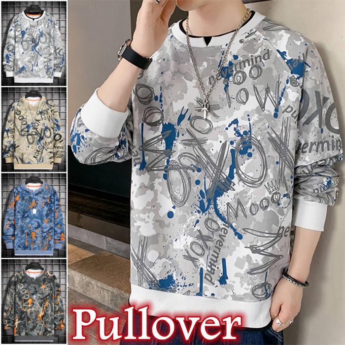 お洒落 プルオーバー 長袖Tシャツ カジュアル トップス 男性用 春秋服 4colors 白色 灰色 藍色