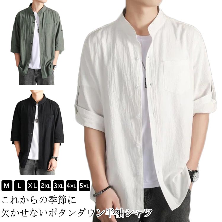 シャツ 無地 ボタンダウンシャツ 半袖シャツ 開襟シャツ シンプル 7分袖 メンズ 半袖 涼しい 羽織り 大きいサイズ 綿麻 フォーマル ビジネス 30代 ワイシャツ 切り替え トップス メンズファッ