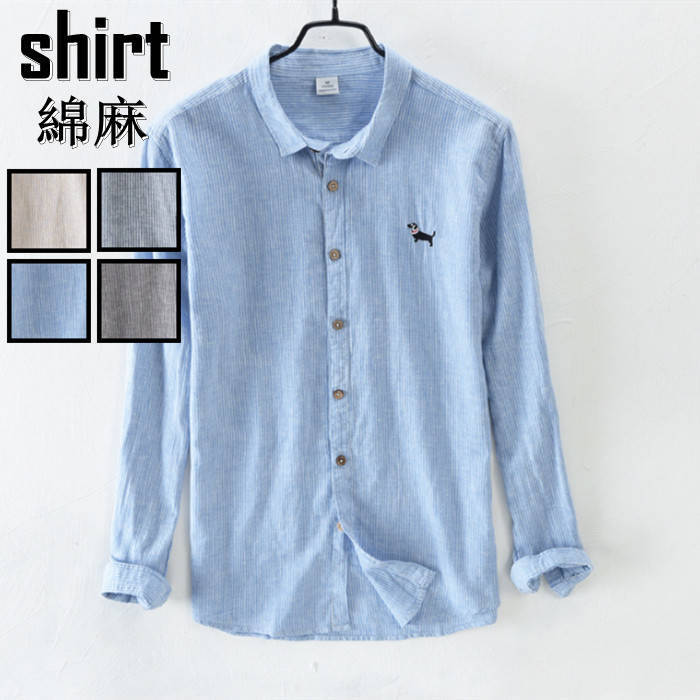 綿麻 長袖シャツ ストライプ柄 カジュアル 男性用 トップス 4色メンズファッション トップス カジュアルシャツ