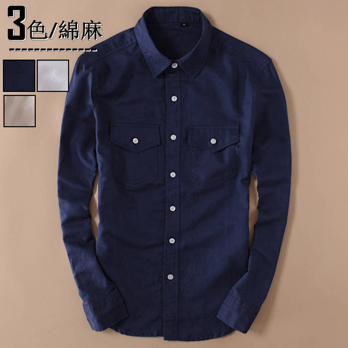 綿麻 ビジネス シャツ 長袖シャツ カジュアル 男性用 トップス 3色メンズファッション トップス カジュアルシャツ