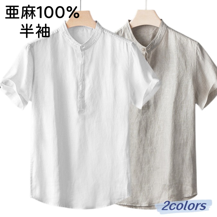 綿麻 半袖シャツ 立ち襟 カジュアル 男性用 トップス 夏物 5色メンズファッション トップス カジュアルシャツ