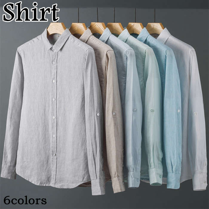 亜麻 ゆったり 長袖シャツ カジュアル 男性用 トップス 6色メンズファッション トップス カジュアルシャツ