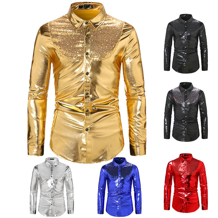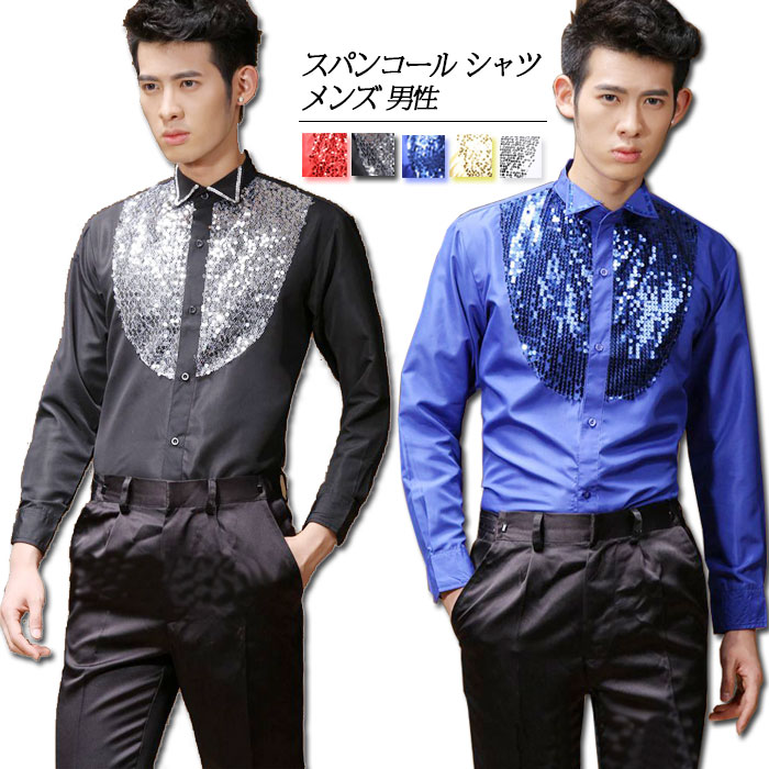 在庫処理 カラーシャツ 長袖 メンズ おしゃれ スパンコール 光沢感 男性用 細身 スリム ダンス衣装 ステージ 舞台衣裳 無地 イベント パーティー 発表会 舞台 社交ダンス 衣装 ハロウィン 仮装