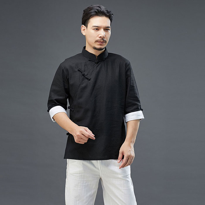 チャイナ服 メンズ 男性 長袍 チャンパオ チャイナ風 中華服 中国 メンズ用 カジュアル 服 ロング丈 シャツ ジャケット 上着 中国伝統服 メンズ チャイナ服 麻 リネン カジュアル ブラック 黒
