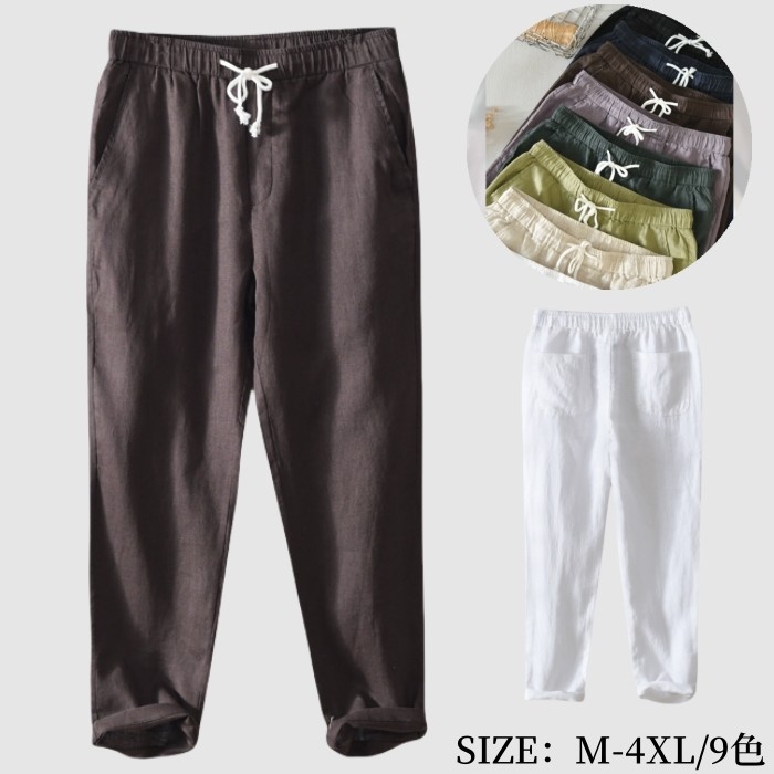亜麻100% 春夏新作 快適 テーパードパンツ 通気 九分丈 男性用 9色メンズファッション ズボン パンツ