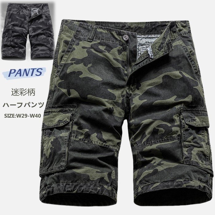 綿100% 男性用 ハーフパンツ ストレッチ 五分丈パンツ カモフラージュ ショートパンツ 普段着 部屋着 夏 2色 灰 緑