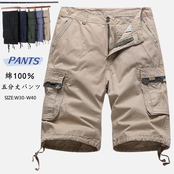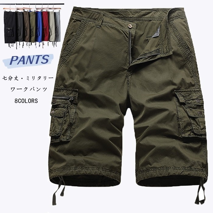 綿100% 七分丈パンツ 男性用 ハーフパンツ ワーク ショートパンツ ストレッチ 普段着 部屋着 夏 7色 灰 緑 黒 紺 赤