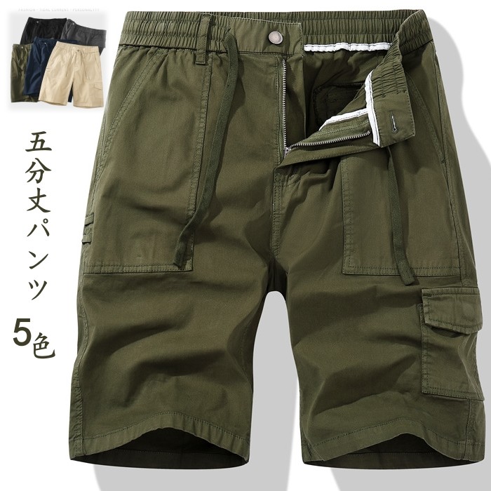 男性用 ハーフパンツ ゴム入り 五分丈パンツ ショートパンツ 普段着 部屋着 夏 5色 灰 緑 黒 紺