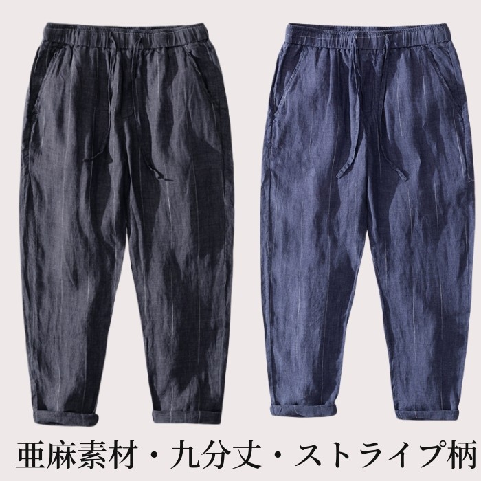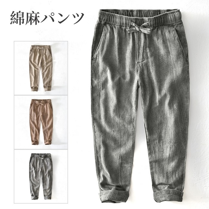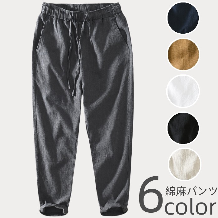 綿麻素材 九分丈 テーパード パンツ 無地 春 夏 快適 通気 男性用 6色メンズファッション ズボン パンツ