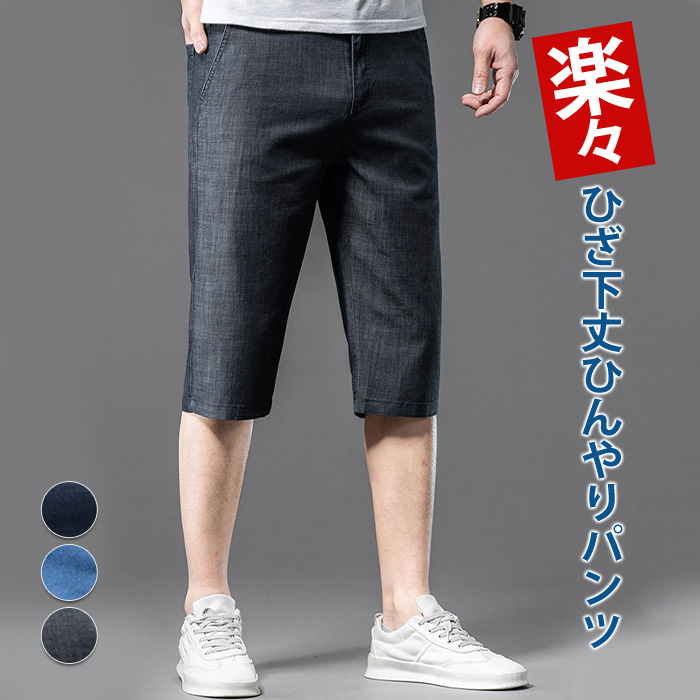 パンツ メンズ 7分丈 ひんやり 夏 接触冷感 ゆったり ハーフパンツ 薄手 涼しい ズボン 大人 きれいめ ボトムス デニム 膝丈 楽ちん イージーパンツ カジュアル お洒落 無地 着痩せ 美脚 通