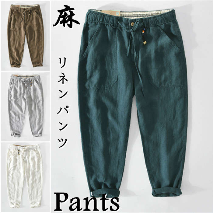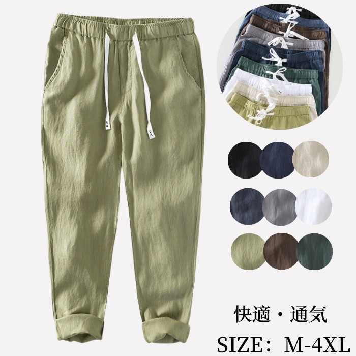 リネンパンツ ウエストゴム 通気性 快適 涼しい 部屋着 春夏秋服 全9色メンズファッション ズボン パンツ