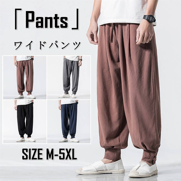 パンツ リネンパンツ ジョガーパンツ 綿麻 メンズ カジュアルパンツ ロングパンツ 原宿系 麻 薄手 涼しい ワイドパンツ サルエルパンツ -5 大きいサイズ イージーパンツ 夏物 ボトムス