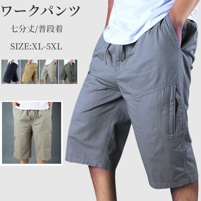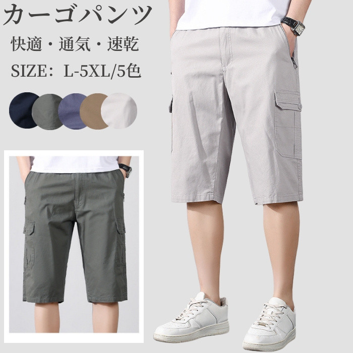 コットン100% ハーフパンツ 七分丈パンツ 軽量 通気 ひざ下 普段着 男性用 5色メンズファッション ズボン パンツ