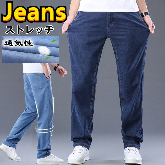 春 夏 秋 新作 薄手 ジーンズ ストレッチ デニムパンツ 男性用 ロングパンツ ジーパン ブルー 2colors