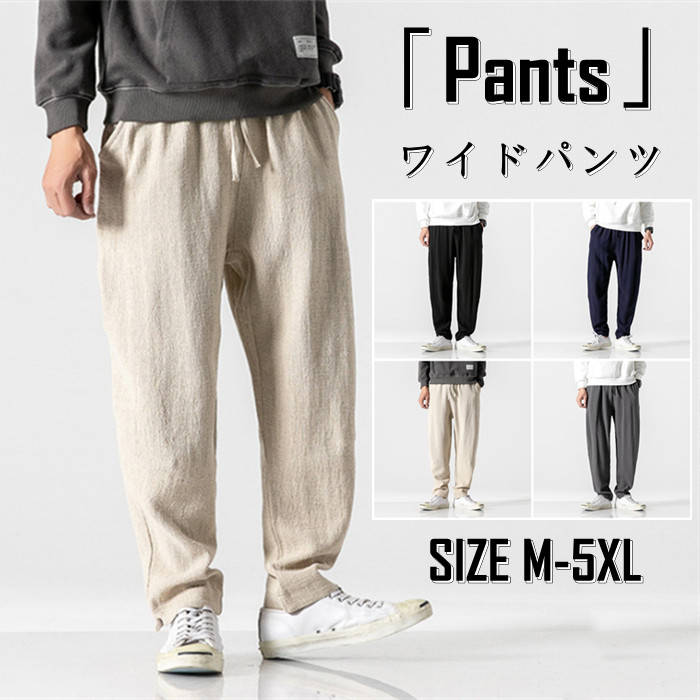 パンツ リネンパンツ ジョガーパンツ 綿麻 メンズ カジュアルパンツ 原宿系 麻 無地 薄手 涼しい ワイドパンツ ロングパンツ -6 大きいサイズ イージーパンツ 夏物 ボトムス