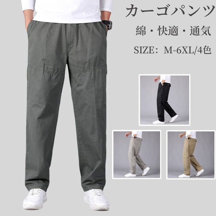 メンズパンツ 綿100% カーゴパンツ ストレートパンツ カジュアルパンツ 快適 通気性 ロングパンツ 無地 ワークパンツ ミリタリーパンツ イージーパンツ ゆったり 作業着 普段着 薄地 通気 涼し