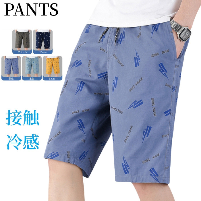 柄パンツ 五分丈メンズパンツ 綿100% プリント柄 ハーフパンツ ショートパンツ カジュアルパンツ 涼しい お洒落 半ズボン 短ズボン 大きいサイズ イージーパンツ 普段着 部屋着 夏パンツ 海 ビ