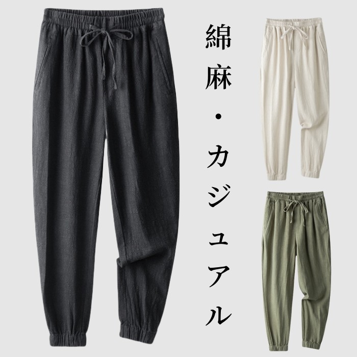 綿麻生地 無地 イージーパンツ 春夏秋ボトムス 通気性 涼しい 通勤 4色メンズファッション ズボン パンツ