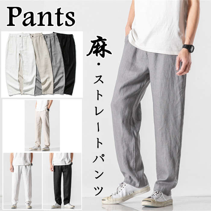綿麻 ワイドパンツ ストレートパンツ カジュアル 男性用 ボトムス 夏物 4色メンズファッション ズボン パンツ