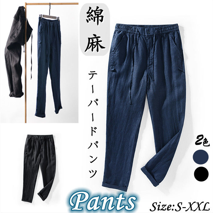 綿麻 春夏新作 男性用 ワイドパンツ カジュアル スラックス 2 黒色メンズファッション ズボン パンツ
