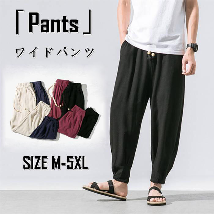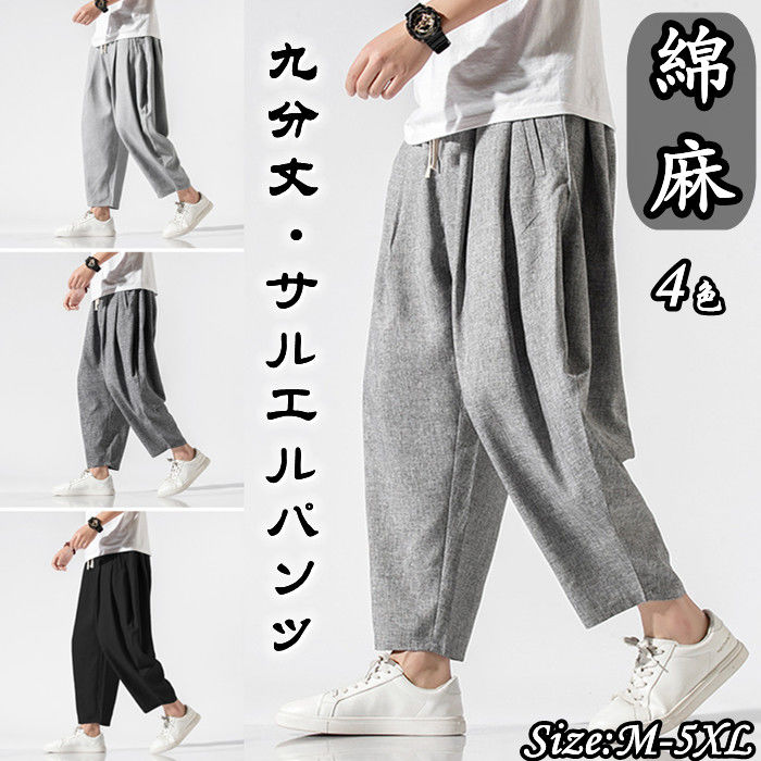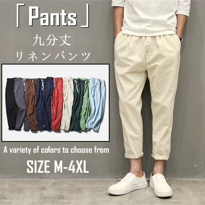 九分丈 綿麻 ワイドパンツ カジュアル 男性用 ボトムス 夏物 9色メンズファッション ズボン パンツ