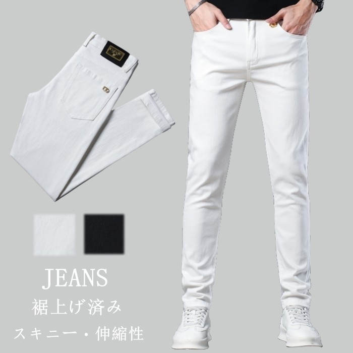 春 夏 秋 新作 美脚 ジーンズ 伸縮性 デニムパンツ 男性用 ロングパンツ 裾上げ済み 普段着 2colors 黒色 白色