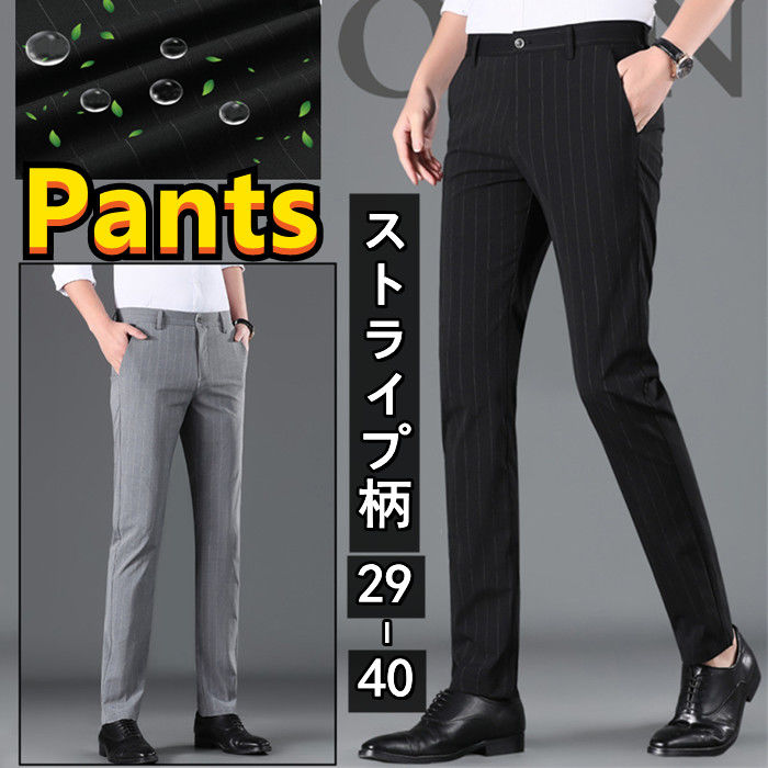 ロング丈 スラックス 通気性 ビジネスパンツ カジュアル ストライプ柄 男性用 薄手 春夏秋服 2色 黒色 灰色