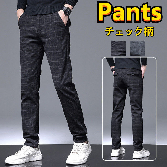 春夏新作 男性用 薄手 チェック柄 ストレッチ チノパン 美脚 ビジネスパンツ カジュアル ロングパンツ 2colors 黒色 灰色