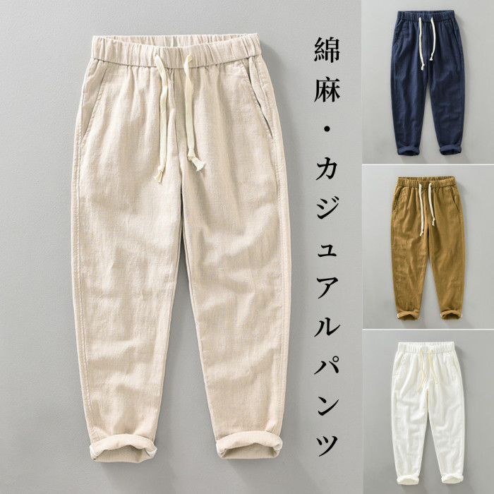 綿麻生地 ガッコいい 九分丈 テーパード パンツ 春 夏 秋 男性用 4色メンズファッション ズボン パンツ