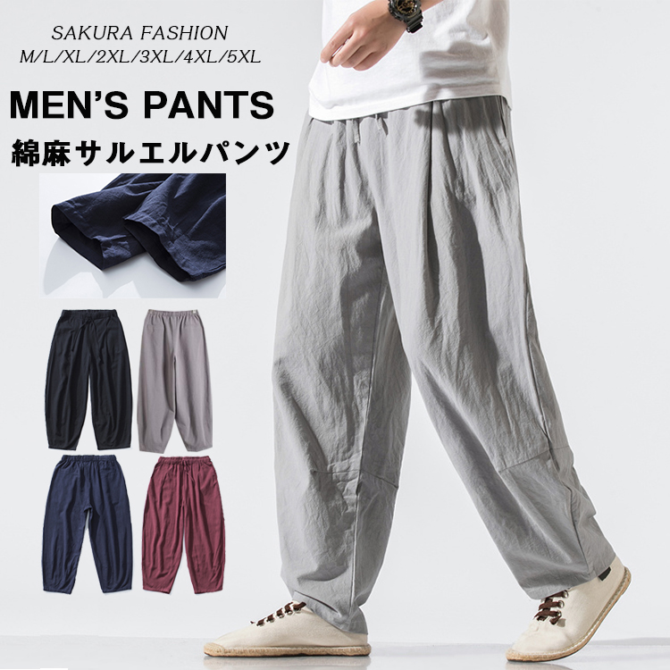 サルエルパンツ メンズ リネンパンツ 夏 麻パンツ 綿麻パンツ ロングパンツ カジュアルパンツ ロングパンツ ワイドパンツ
