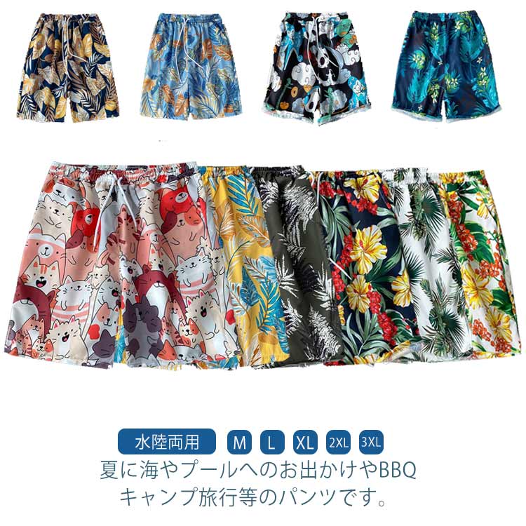 水着 おしゃれ 短パン サーフパンツ スイムウェア スイムパンツ メンズ ショーツ 花柄 ゴム ゴルフパンツ 海パン 水着 ハワイアン アロハ 春服 水陸両用 リゾート 海 プール 旅行 大きいサイズ