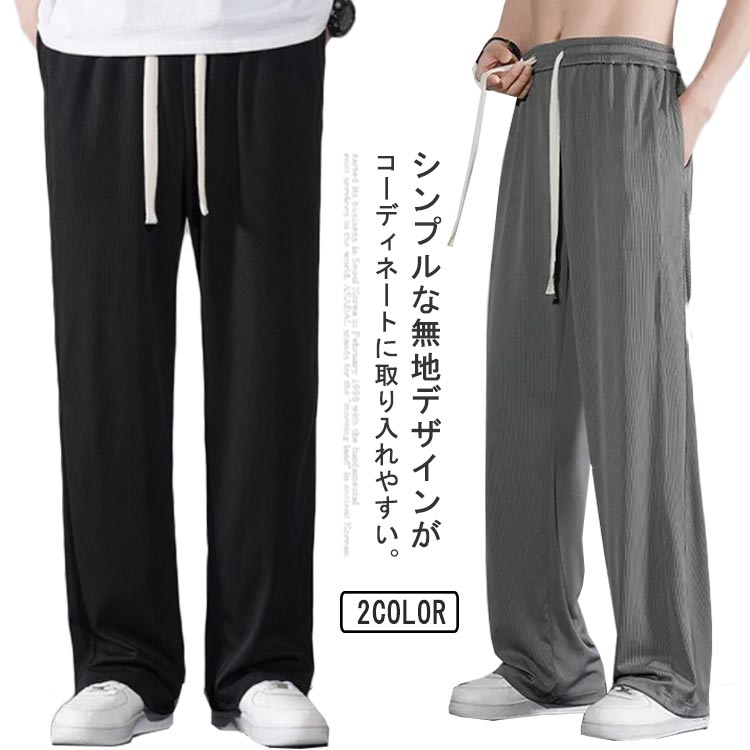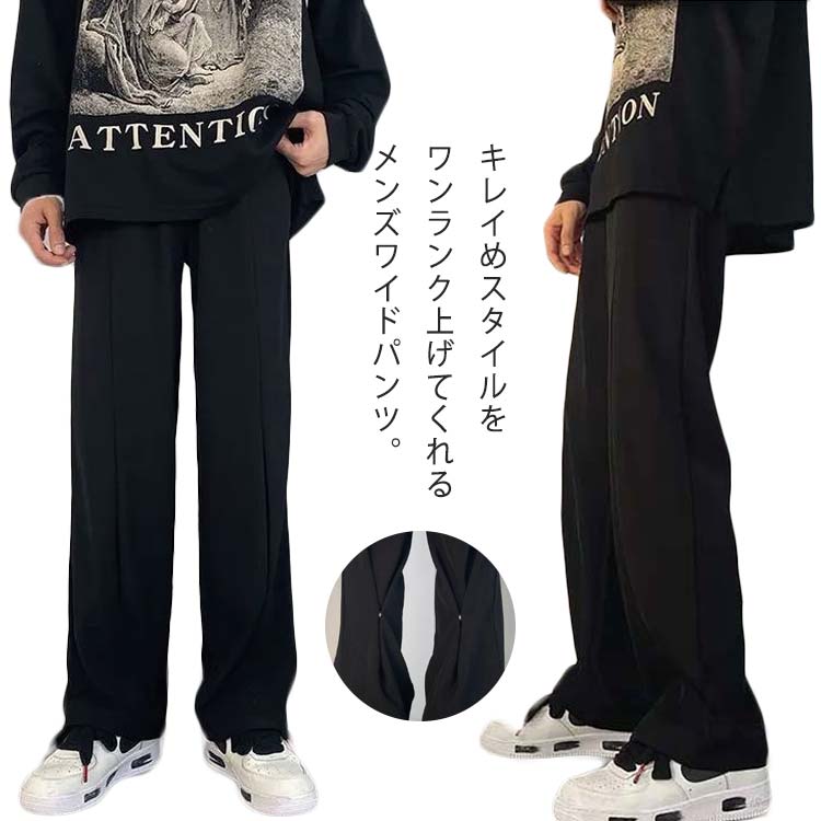 無地 ワイド メンズ ボトムス 秋 落ち感 スラックスパンツ 春 夏 パンツ 冬 滑らか ワイドパンツ