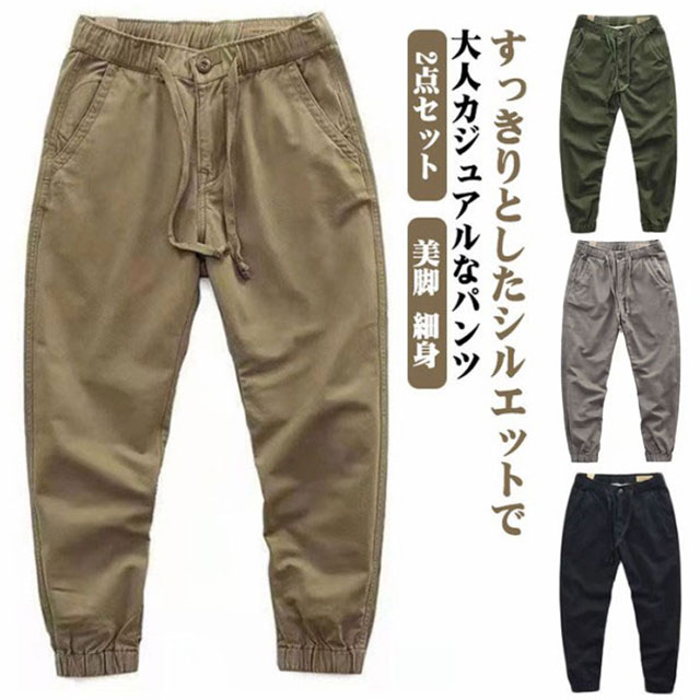 チノパンツ メンズ ジョガーパンツ スリム 美脚 2点セット チノパン テーパードパンツ サルエルパンツ カーゴパンツ 冬服 春服 テーパード サルエルパンツ オフィス カジュアル ストレッチ 細身