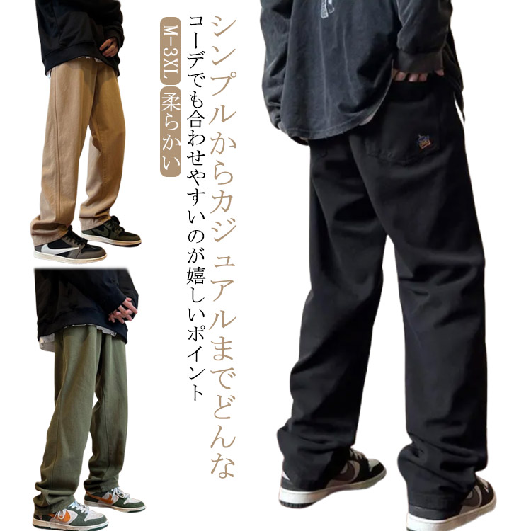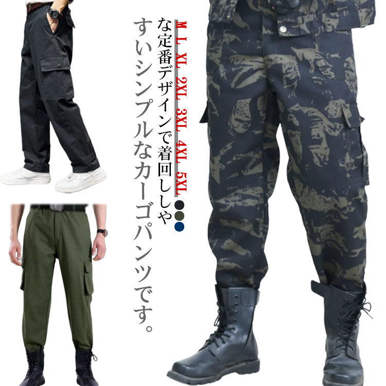ボトムス ゆったり カーゴパンツ メンズ パンツ 着痩せ 長ズボン ロング丈 ミリタリー ロングパンツ 冬 ワークパンツ ストレート チノパンツ 作業 リラックス ズボン ボトムス 無地 おしゃれ 快