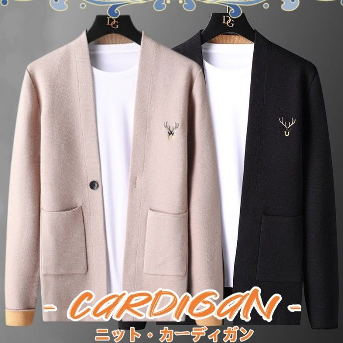 ニット カーディガン 長袖 ジャケット ショートコート アウター トップス 春秋服 3色 ブラックメンズファッション トップス カーディガン