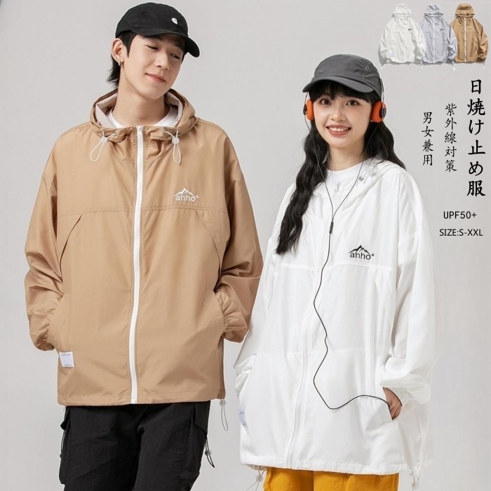 接触冷感 UVカット パーカー ユニセックス カーディガン ポーティ風 ライトアウター 紫外線カット カジュアル ジャケット 夏 3colors 灰色 白色