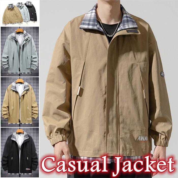 立ち襟 カジュアルジャケット ショートコート 男性用 アウター 3colors 黒色 灰色メンズファッション コート ジャケット