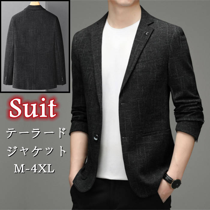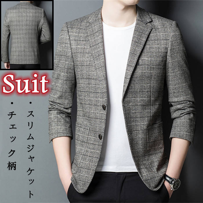 春秋服 ブレザー 男性用 チェック柄 テーラードジャケット 灰色メンズファッション コート ジャケット